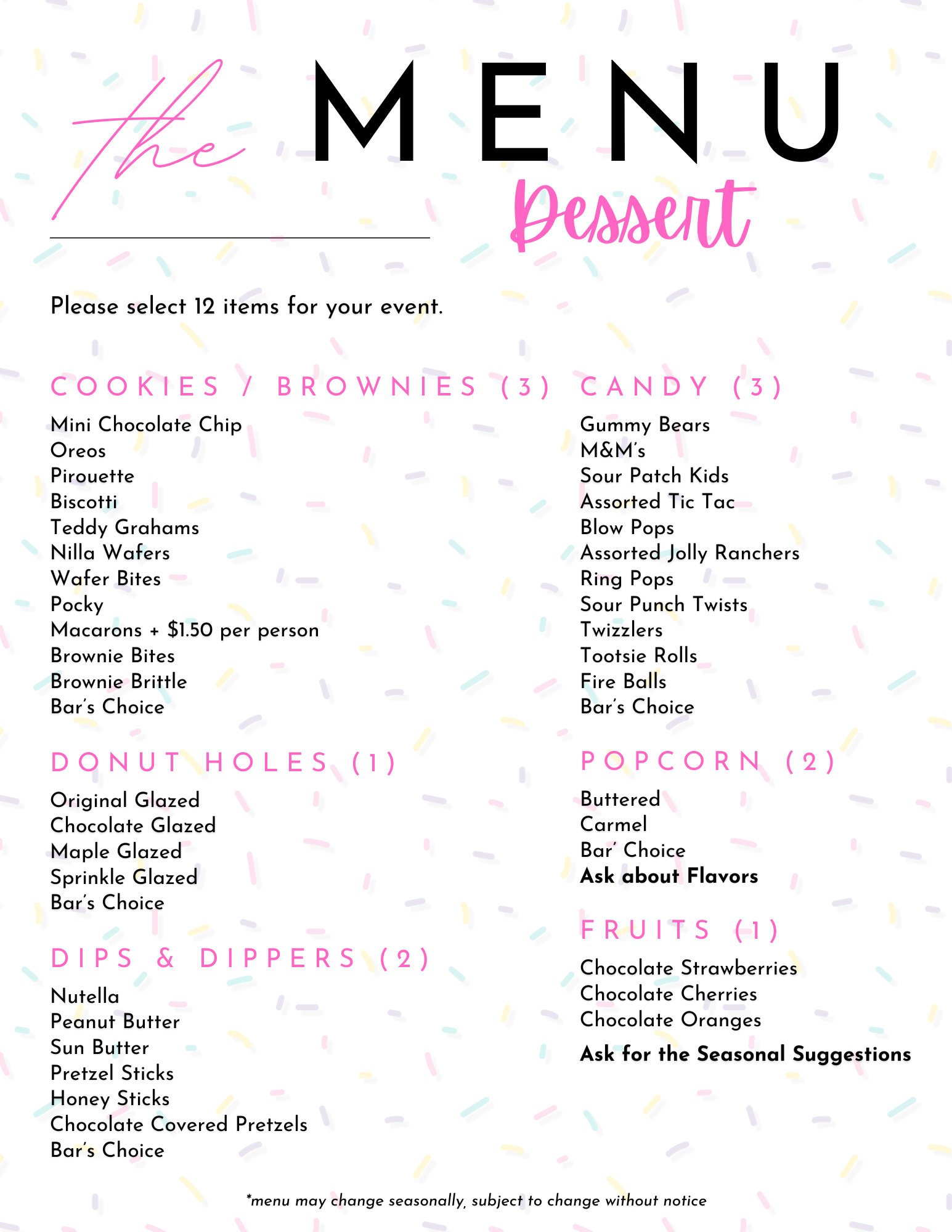 All menus are subject to change due to seasonal offerings, supply issues, product issues.